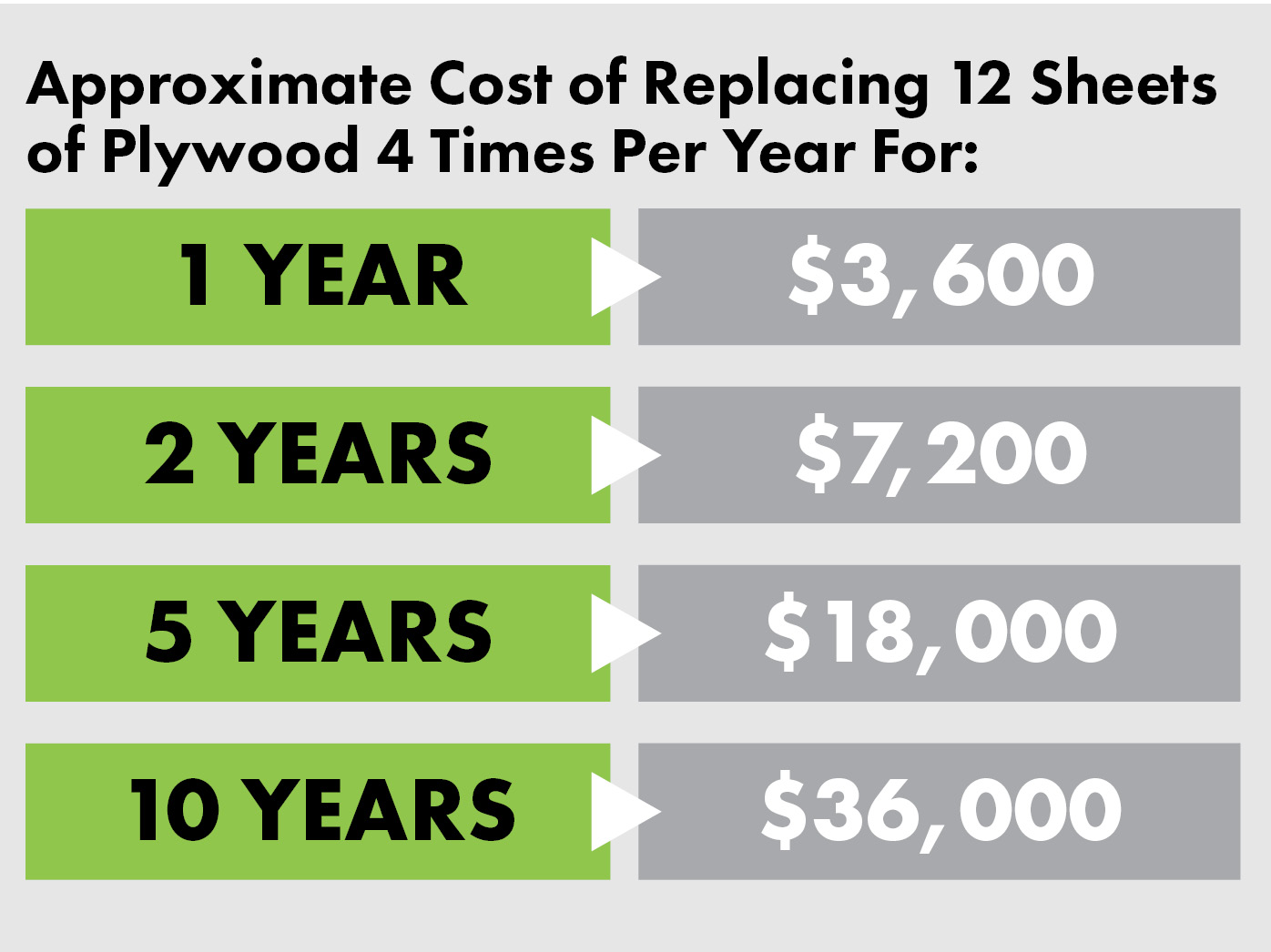 Approximate cost of replacing 12 sheets of plywood 4 times per year
